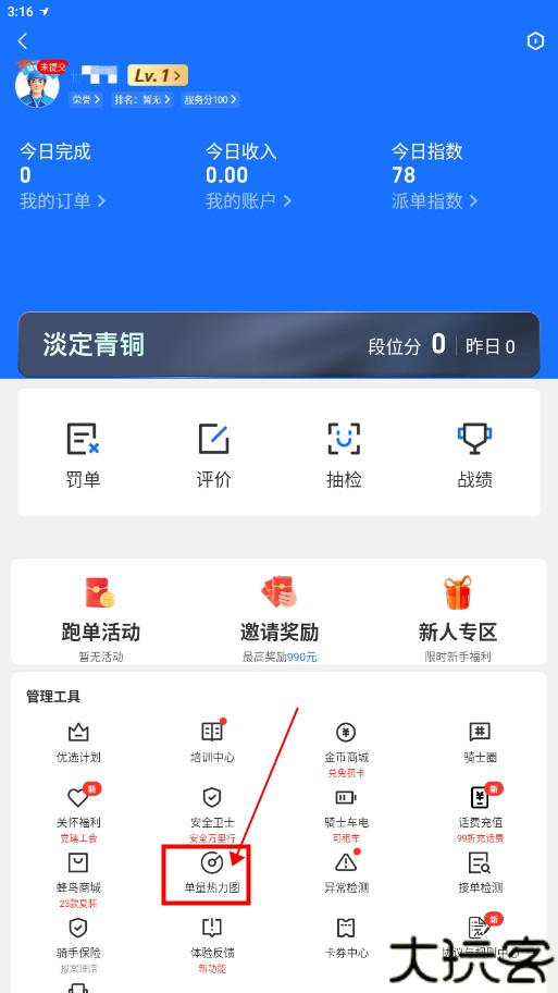 1、进入软件,在“我的”页面找到“单量热力图”。