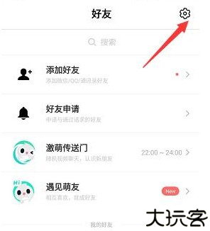打开Faceu激萌,点击“找朋友”,进入后点右上角齿轮图标。