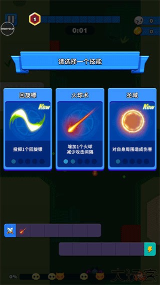 4、每次玩家升级后,玩家将获得一个新的技能,能为战斗提供更多的选择。