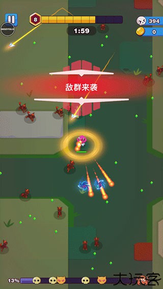 5、随着游戏进程的推进,敌人种类和数量将会逐渐增加,挑战也变得越来越艰巨。