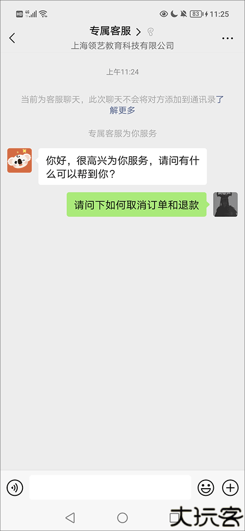 2、在对话框中说明订单取消的需求,客服将指导后续流程。