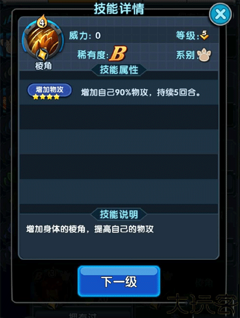 5、棱角增加90%物攻,持续5回合,它能增加物攻提高伤害,因为火神本身的物攻非常优秀,棱角的70%加成能够最大化发挥它的优势。