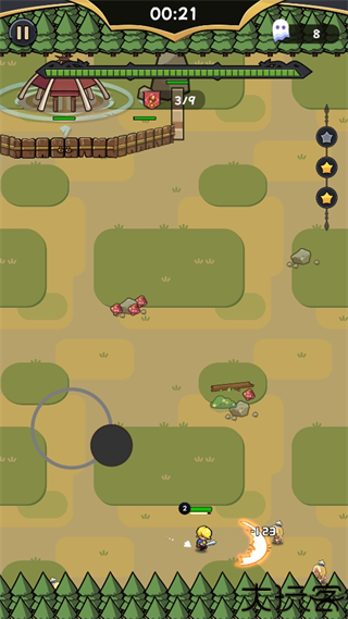 3、系统上采用了放置战斗的玩法模式,滑动屏幕即可控制防御塔对区域内的敌人进行自动攻击。收集场景中掉落的经验石可以对防御塔的等级进行提高。