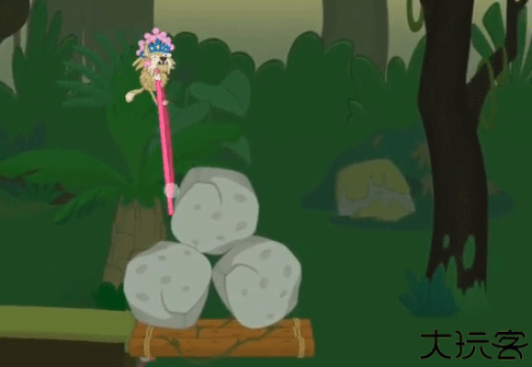 2、利用小碎步一直蹬地,成功到达最上面那块石头。