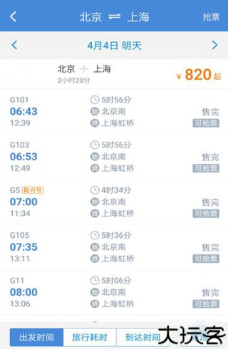 2、根据各自的安排选好自己想要乘达的趟数,耗时可见,然后按进对应一栏。