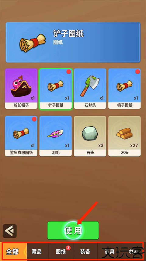 4、进入背包界面,玩家可使用和查看各种收藏品、图纸、装备、道具和材料等所拥有的所有资源。