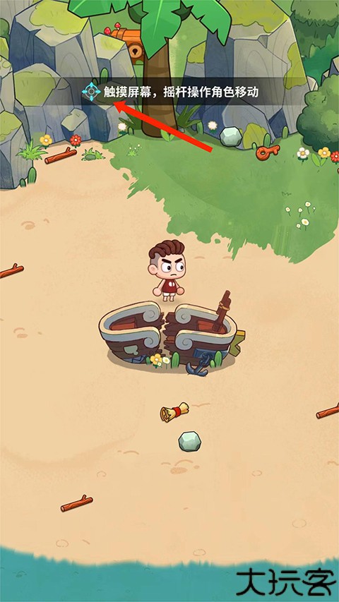 9、进入任务界面,玩家需要在沉船处找到【斧头图纸】,触控屏幕滑动摇杆以控制角色移动。