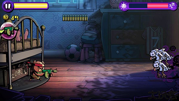 4、可在罗宾的床上设置玩具防御道具,招募并且带领各自不同的队伍,穿过重重关卡。