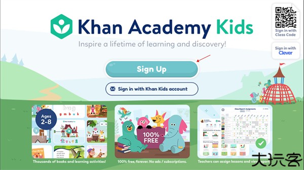 1、双击打开可汗学院儿童版软件,需要先注册,注册完点击播放键来进入软件。