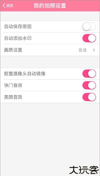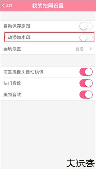 5、将设置栏中显示的自动添加水印按钮关掉后,拍出的照片上就没有水印了。