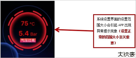 3、当胎压出现异常时,会出现过高温度数据、胎压数据胎压图标、文字提示为红色或有语音提示等等。