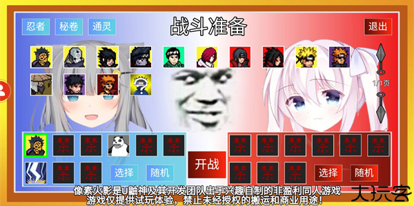 2、各自选定角色,完成后点击确认准备开战。