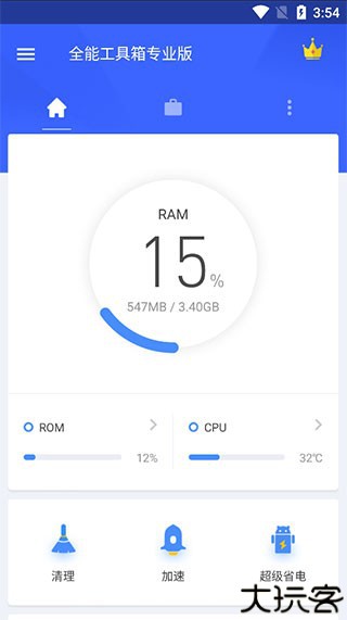 1、能够查看内存、电量、CPU热度,并可一键清理加速、管理应用及网络。
