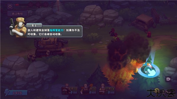4、玩家点击指挥官能力,可以将它拖到到敌人多的地方,造成大范围伤害。