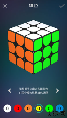 3、用户将自己手中魔方的颜色一个个点击上去。