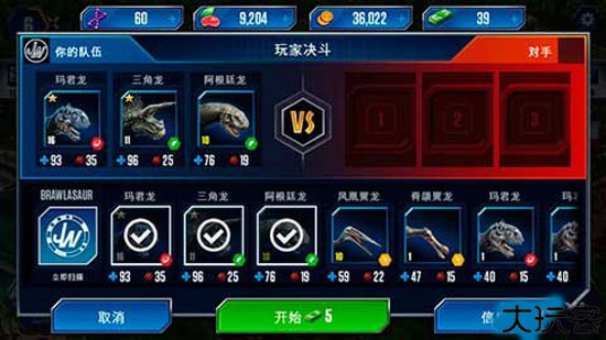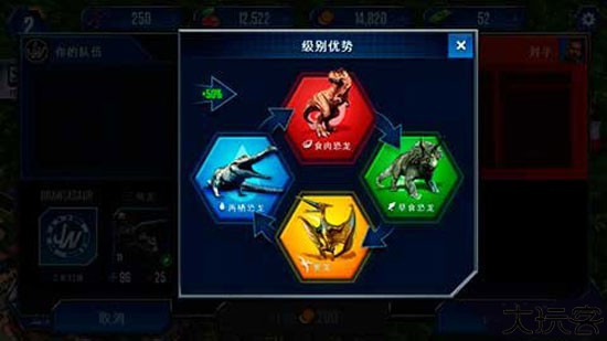 1、系统按三只恐龙的战力组合匹配对手,利用低中高战力恐龙排兵布阵,保留最强清场。