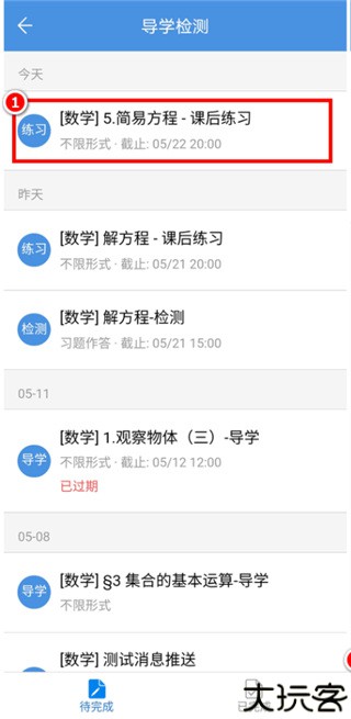 1、进入导学检测入口,就可以查收老师布置的作业了。