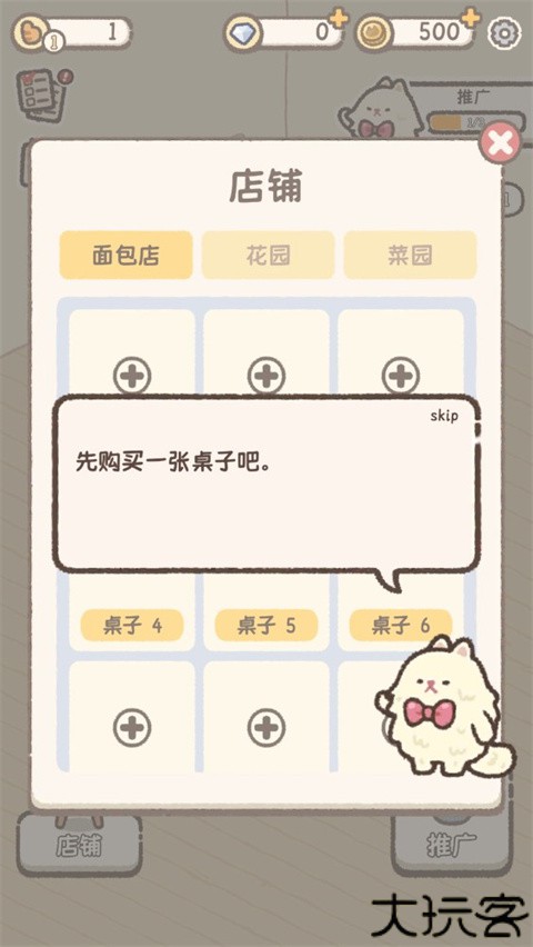 2、在客人来之前,需要在店铺中购买一张桌子。