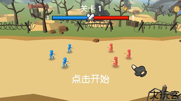 2、玩家成功登录之后,会进入第一关接收新手引导,点击屏幕即可开始游戏,军队会自己战斗。