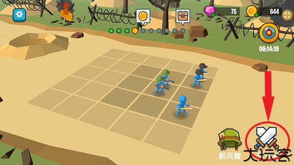 6、玩家点击右下角的关卡即可进入游戏,玩家开战前可以拖动士兵调整站位,以更好的取得胜利。