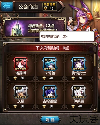 逛一逛,每天都会有不同的角色碎片,装备材料等出售。