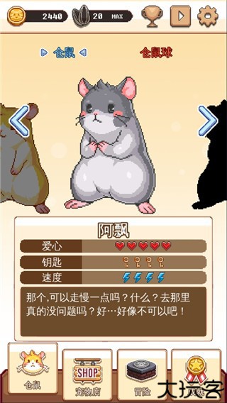 解锁带有属性差异的仓鼠和对应护球,自由组队出战。