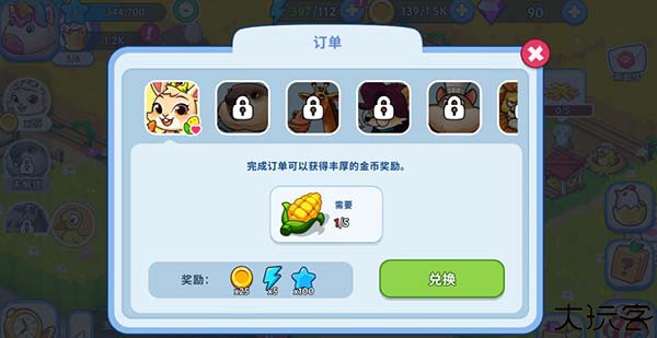 完成指定订单可获得金币、体力与经验,多线养成。