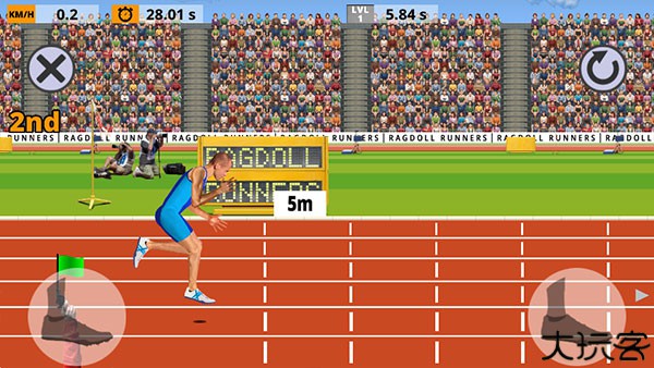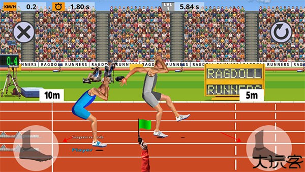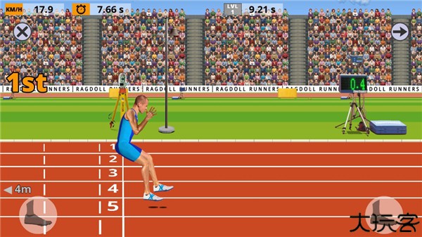 按压双键控制运动员双腿交替移动,需配合节奏把握冲刺时机。