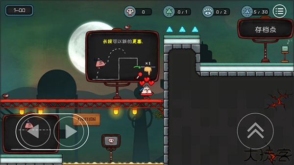6、长按跳跃键可以跳的更高,到达前面的存档点即可存档。