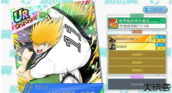 简介:属性比较平均的皇帝,射门威力不高,比速皇、白日向低很多,但比其他前锋还好些,主技能是A高空射门,抽到这个可以学习强袭SSR的B射门,作为过度卡使用,毕竟射门属性不高、必杀威力又低,有更好的主力就把他换下来吧。后期更新被动增强了高空射门威力,但是仍然不强,唯一作用就是给皇帝学头球。