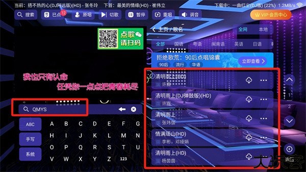 云ktv点歌系统让用户随时随地畅快开唱,海量伴奏曲库覆盖各类风格,手机电视皆可轻松使用。操作直观,分类清晰,热门新歌一目了然,想唱什么一搜即达。云ktv点歌系统app下载后,软件支持高音质播放与实时歌词显示,无需复杂设置即可快速进入演唱状态,无论独唱练嗓还是聚会娱乐,都能带来专业级K歌体验。
