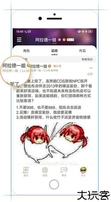 3、聊天:聊天加好友,随性查阅TA的角色信息。