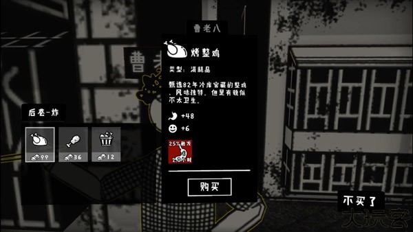 5、辛苦一天之后,玩家需要用一顿“丰盛”的晚餐好犒劳一下自己的五脏庙。如果角色生命值过低,不仅无法继续打工,还有可能生病。如果真的生病了,那可是一笔不小的开销需要支付。