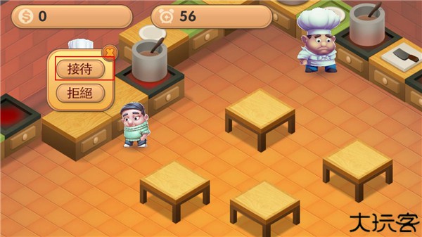 3、除了厨师的角色,玩家还需要担任任服务员并接待客人,游戏的每一步都是非常有挑战性,考验玩家的反应能力。