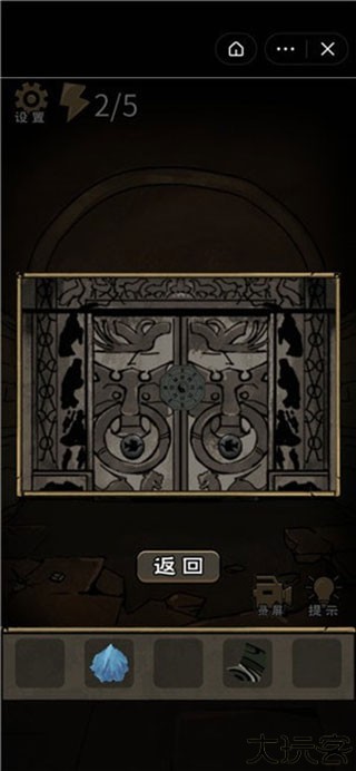 4、接着跳转场景二,点击大门,将两颗宝珠放到凹槽,得到拼图碎片二。