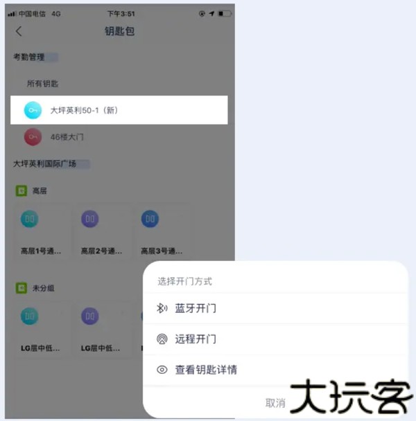 6、进入钥匙包页面后,随后选择对应钥匙点击选择默认开门方式,即可开门。
