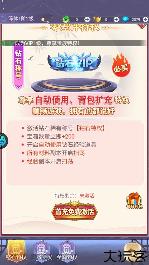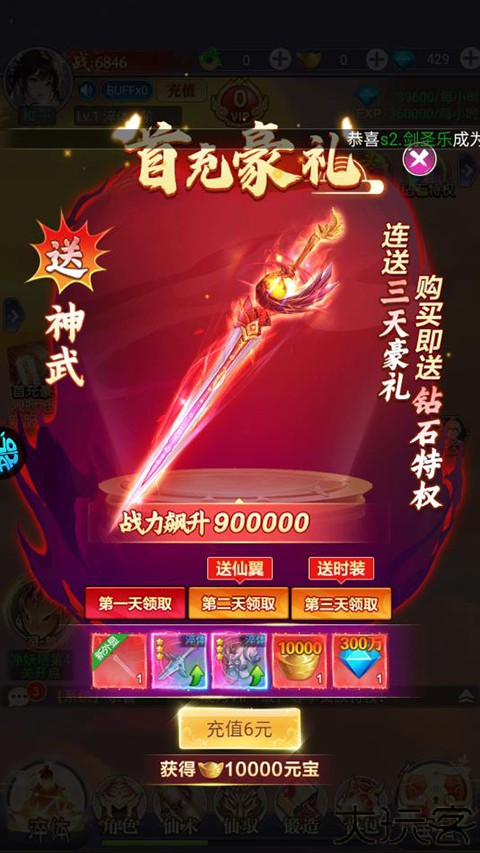 3、每个游戏都会有的首充豪礼,购买即送钻石特权。购买需谨慎。