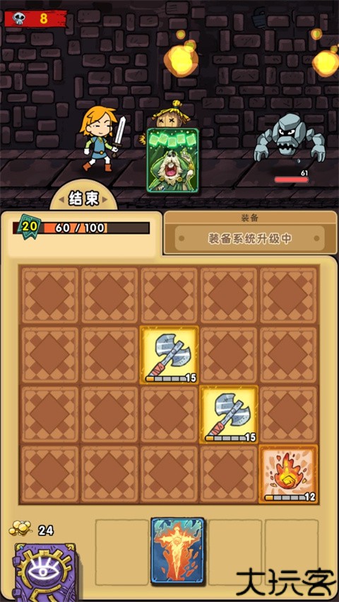 3、翻到的卡牌可以拖拽到上方画面去发动,击败怪物还可获得奖励。