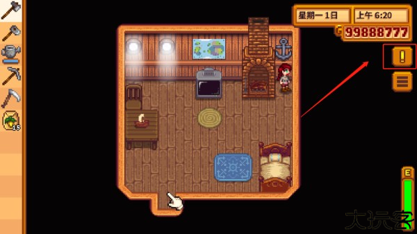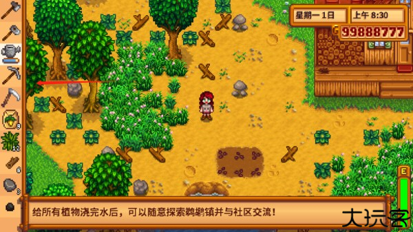 7、走出房间后可以在附近开始开荒,左侧是工具栏。