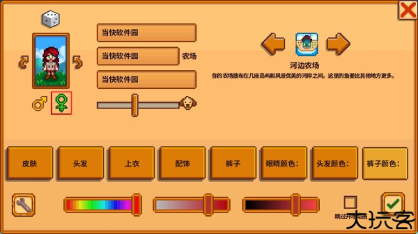 2、点击创建后可以设置姓名、农场名、外表设置,全部设置完成后点击右下方的“√”即可。