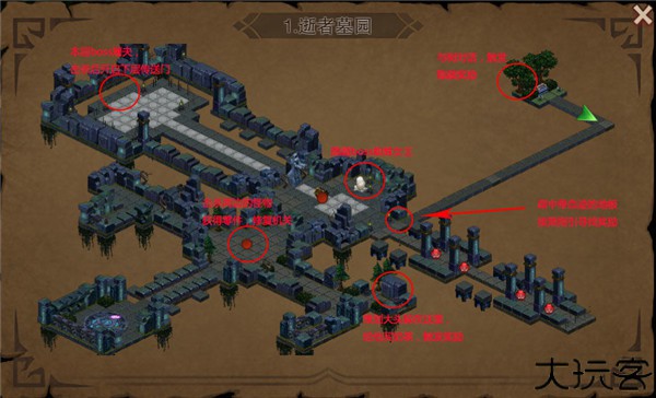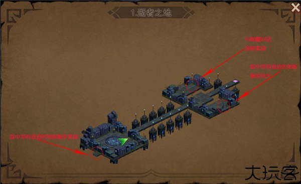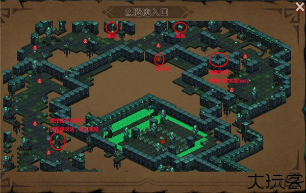 1、玩家踩中带有血迹的地板触发奖励,与骷髅对话即可领取奖励,踩中带有血迹的地板触发机关。