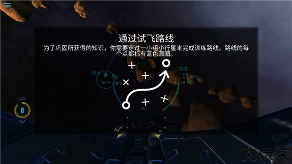 7、随后玩家需要完成试飞路线,穿过一小组小行星来完成训练路线,路线上的每个点都有标记。