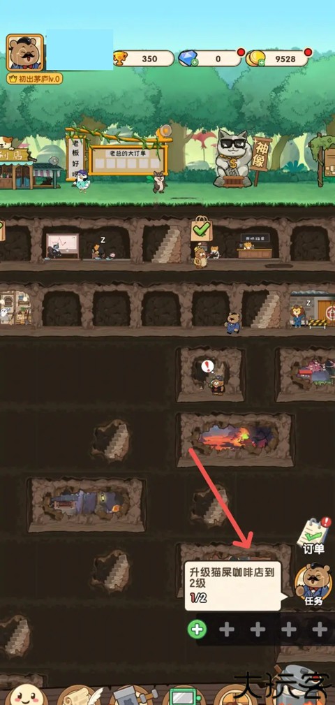 开启游戏后,点击领取升级猫屎咖啡馆的阶段目标。