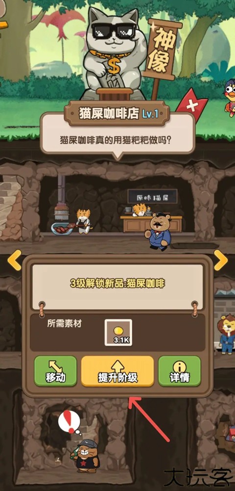前往猫屎咖啡界面,点击阶级提升按钮进行升级。