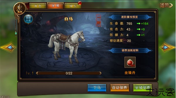 完成16级任务获得坐骑,通过使用坐骑丹提升等级,进阶解锁新外观与属性加成。