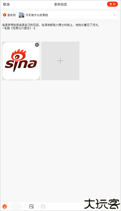 3、填写动态文本,搭配相关配图,完成后点击确认按钮发布。