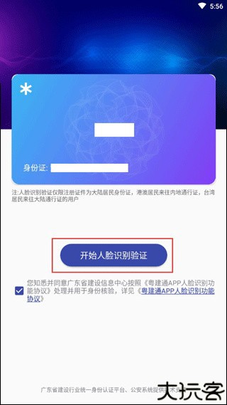 1、请勾选同意《粤建通 APP 人脸识别功能协议》,点击【开始人脸识别验证】,按照系统提示进行操作。