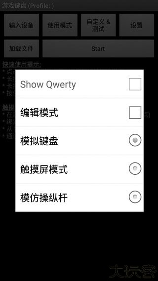 3、点击使用模式,接着就会弹出选项,选择模拟键盘的操作模式。