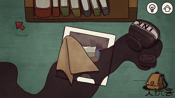 7、玩家向左进入卧室,使用【抹布】擦干净相片上的污渍,需记住照片中眼睛里的符号。