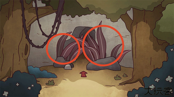 1、玩家先点击洞口两边红色的草,显现山洞后,点击进入。